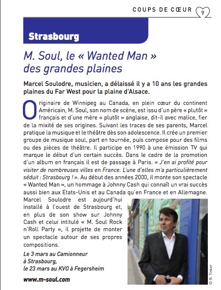 Paru dans le supplément “Coups de Coeur” des DNA, et écrit par le journaliste François Chapelle.