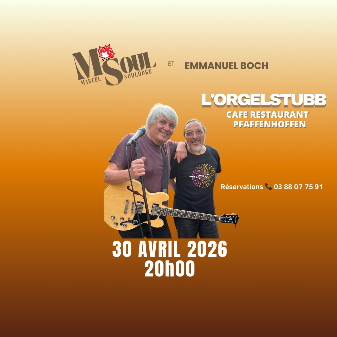 Le jeudi 30 avril, veille du 1er mai, M.SOUL sera en duo avec Emmanuel Boch au clavier à l’Orgelstubb, un lieu original et convivial.
